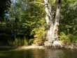 Vi fulgte det naturlige vandløb, kom forbi krybskytten Lars Kjærs hus nu omdannet til en mindestue med mulighed for at spise medbragte madpakker. Turen fortsatte forbi Ravnkilde, et spændende kildeområde. Nogle smagte på det friske kildevand. Igen skulle vi op til en ny flot udsigt over Lindenborg Å og Gravlev Sø, derefter ind i skoven med de mange forkrøblede bøgetræer og bøgetræer med mange stammer fra samme basis.