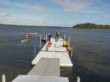Der er endnu ikke opsat borde og stole, så frokosten blev indtaget stående med opdækning på bådebroen. Der blev udvekslet erfaringer om støvler, korte contra lange og vandtæt materiale. Vandet er efterhånden blev koldt, og et par våde kajaksko giver kolde tæer. Øvelsen var at undgå våde sko.